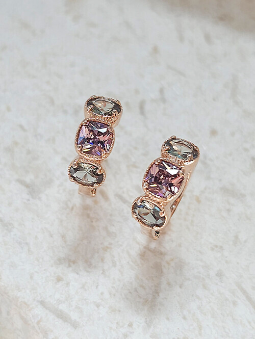 - 14K 18K 베델 컷팅큐빅 트리플링 귀걸이