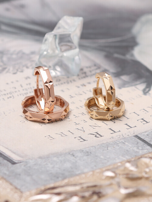 - 14K 18K 육각 오블롱 컷팅링 귀걸이