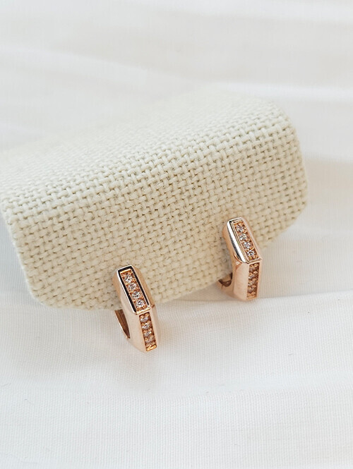 - 14K 18K 세렛 퀄팅 두줄라인 큐빅 링귀걸이