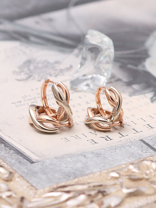 - 14K 18K 버네뜨 투톤 웨이브 꼬임 링귀걸이 (대사이즈)