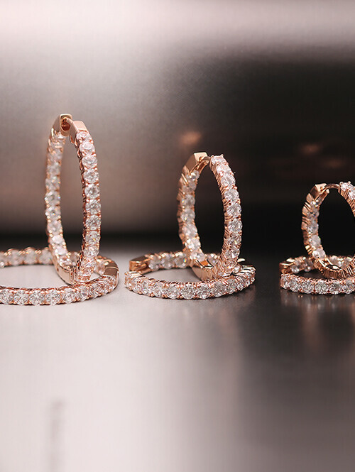 - 14K 18K 듀얼 큐빅 테니스 원터치 링 귀걸이 (중 사이즈)