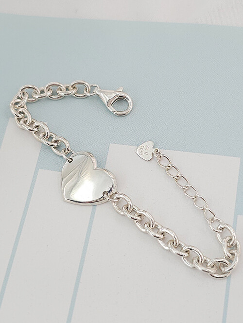 1. 925실버 플랫하트 볼륨 체인 미아방지 아기팔찌