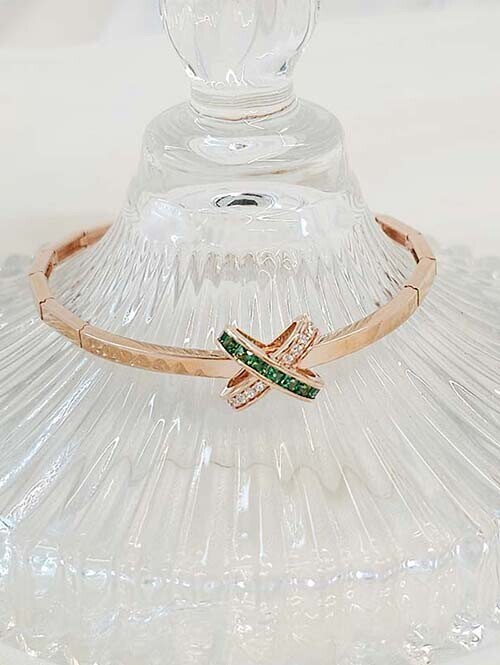 - 14K 18K 브릭레일 삼색 팔찌 (야그 에메랄드,화이트큐빅)
