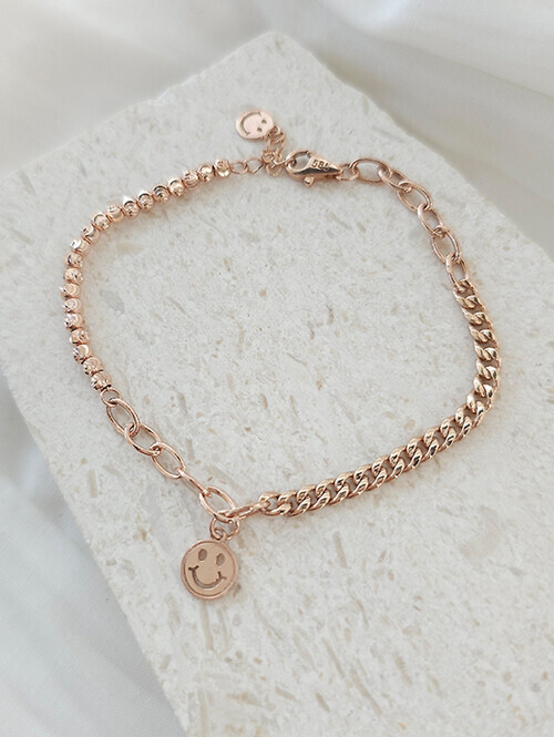 - 14K,18K 쿠키스마일 컷팅볼 언발 체인 팔찌