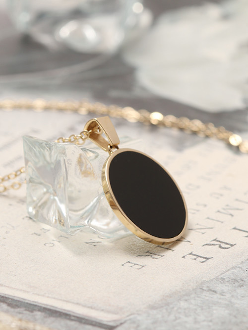 14K 18K 심플 써클 오닉스 팬던트 [체인별도선택]