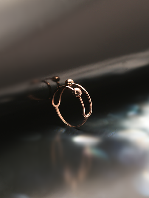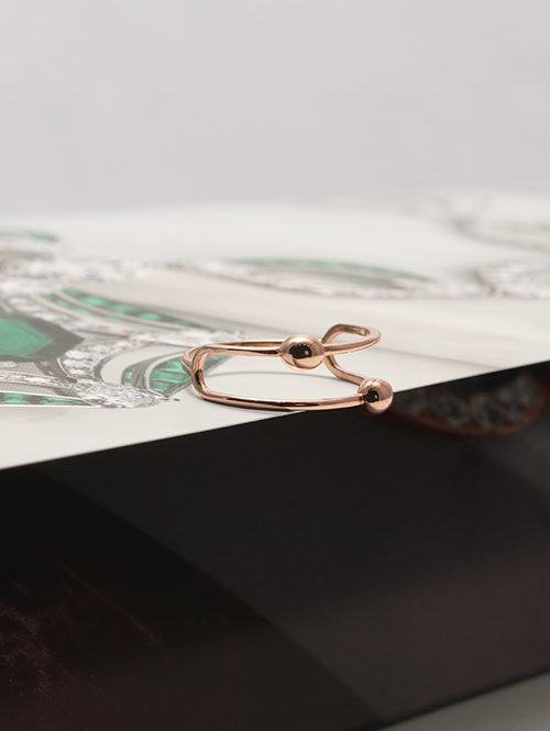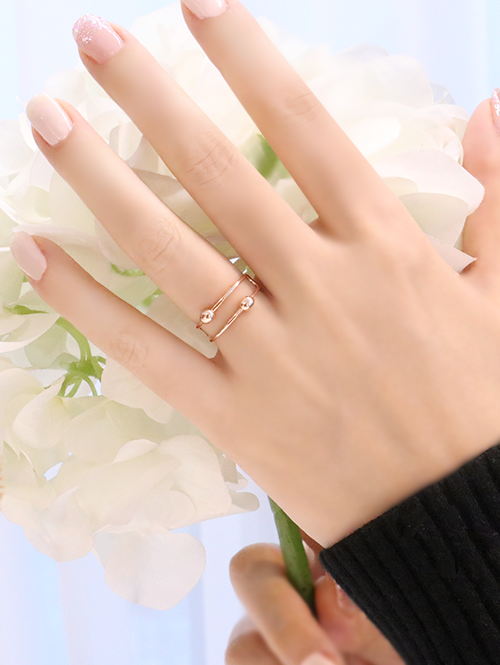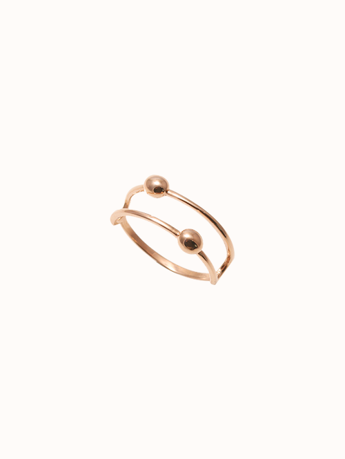 두 줄 라인에 귀여운 볼이 위아래로 교차 셋팅되어 캐쥬얼하면서 매력적인 반지