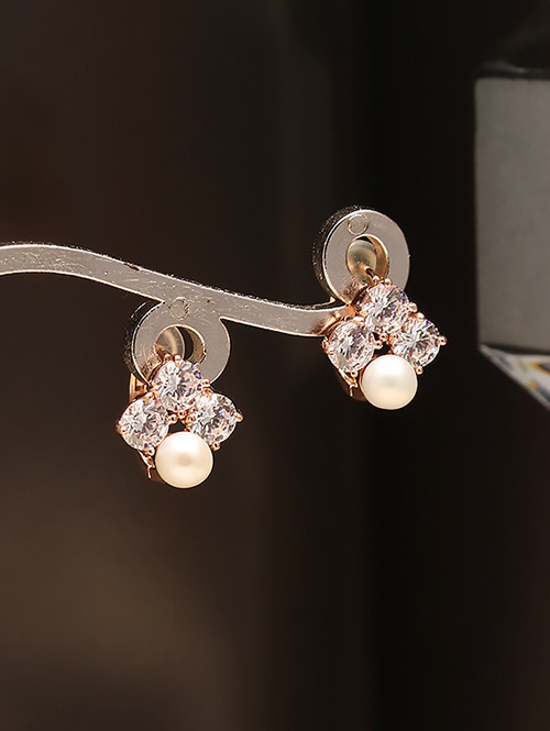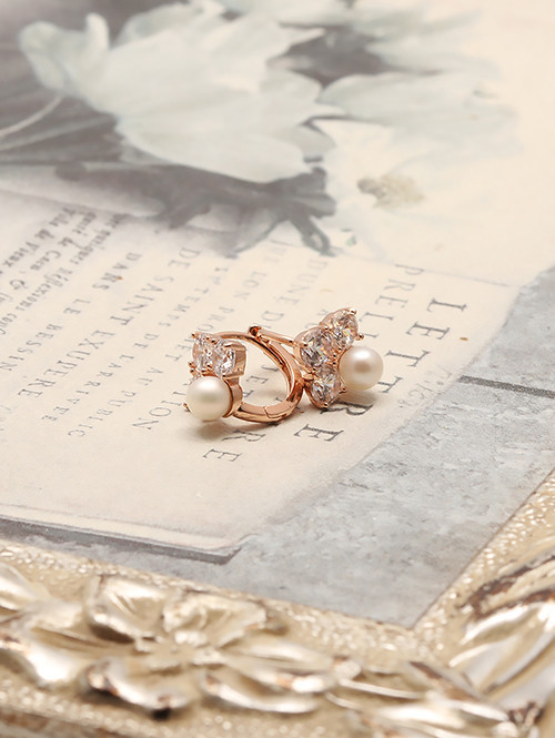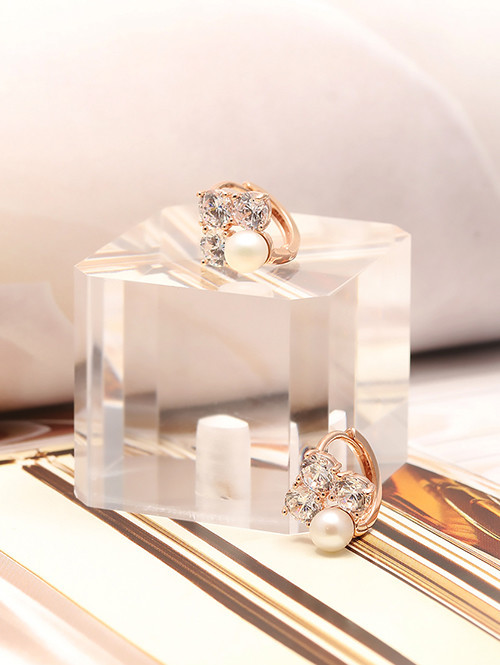3개의 화이트큐빅 아래로 실키한 느낌의 담수진주가 매치된 원터치형 귀걸이