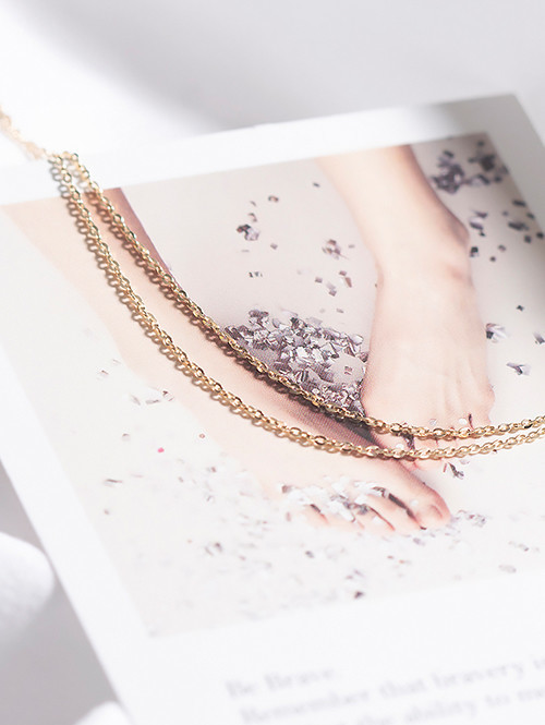 여리여리한 두줄 체인이 발목을 감싸주는 심플하면서 여성스러운 무드의 발찌