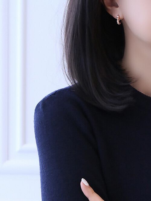 입체적인 삼각뿔로 제작된 시크하면서 세련된 무드의 링귀걸이
