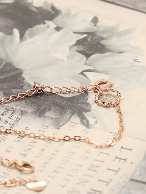 언발로 제작된 체인에 꼬임 써클 장식과 이니셜 D 참이 매치된 발찌