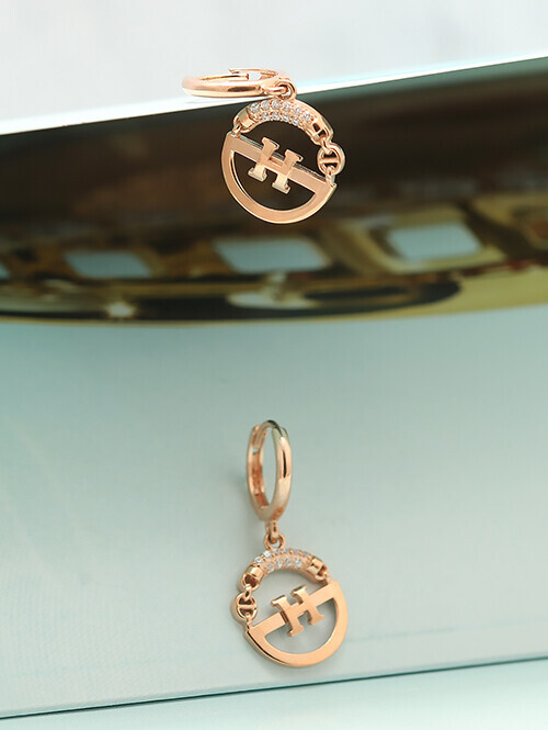 H장식으로 포인트준 고급스런 원터치 귀걸이