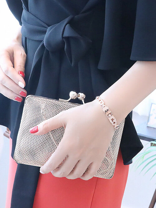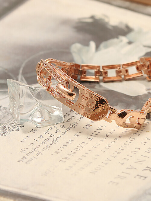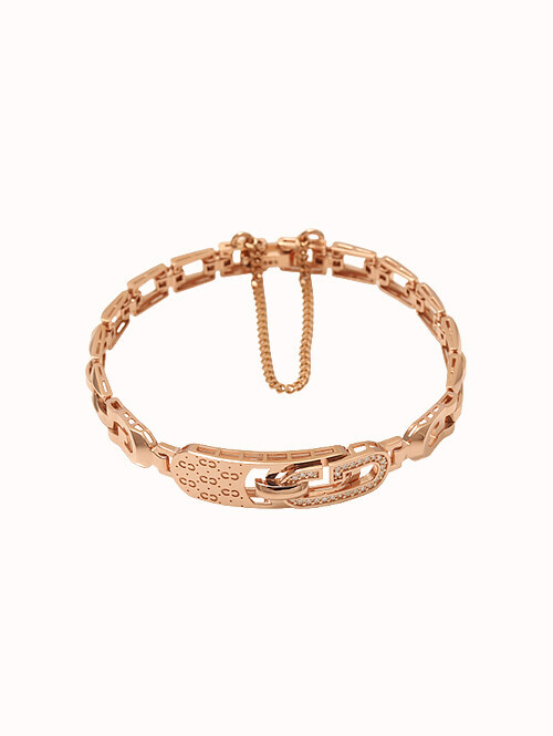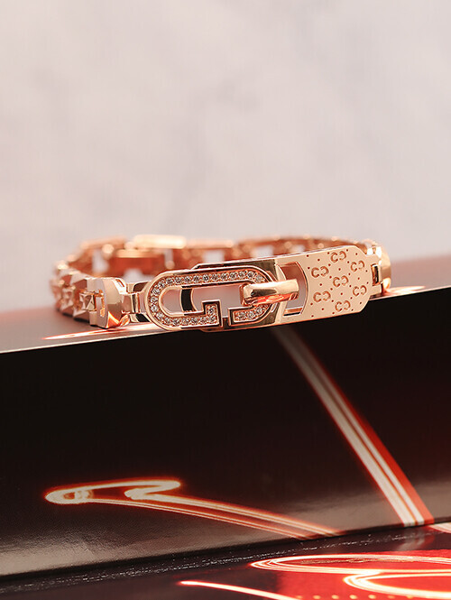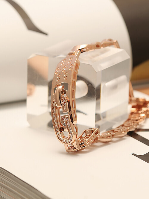 G 쉐입 장식과 고급스러운 패턴이 각인된 라운드 장식이 버클 형식으로 디자인된 팔찌