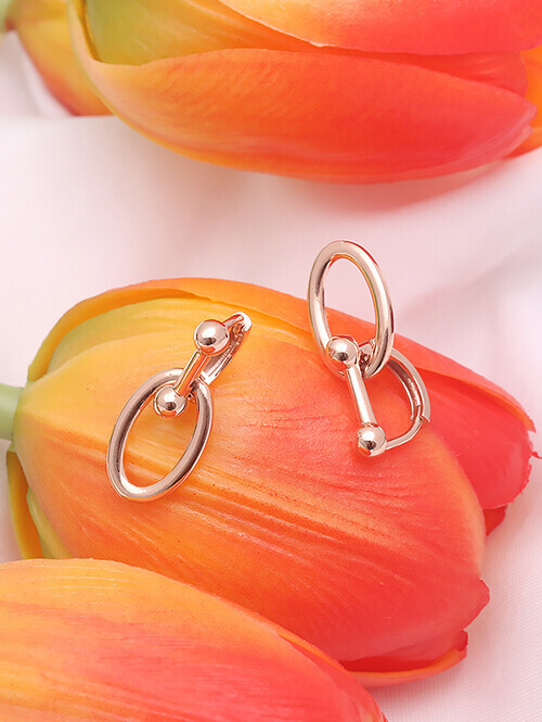 위아래 볼이 이루어진 스틱 원터치 링과 도톰한 써클링이 연결된 귀걸이