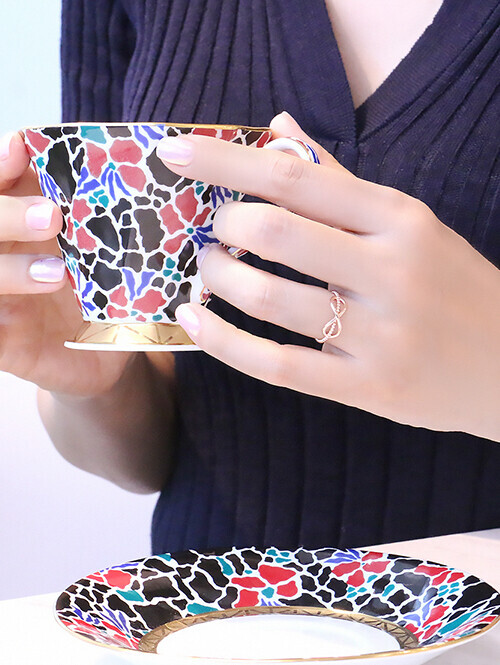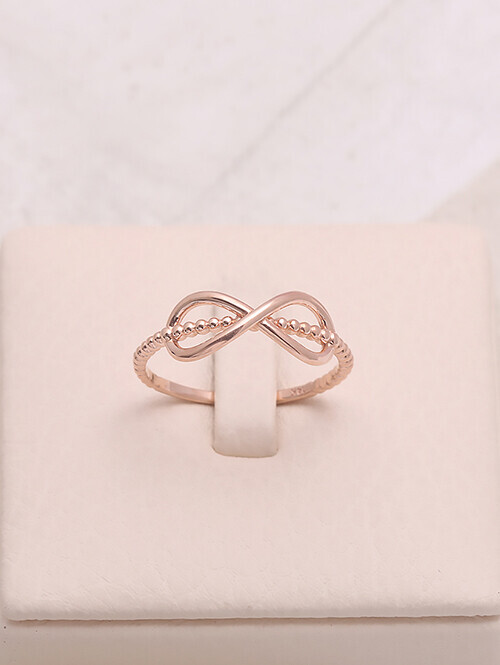 볼 링 위로 리본 모양으로 엮어진 라인의 반지