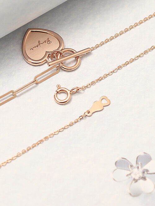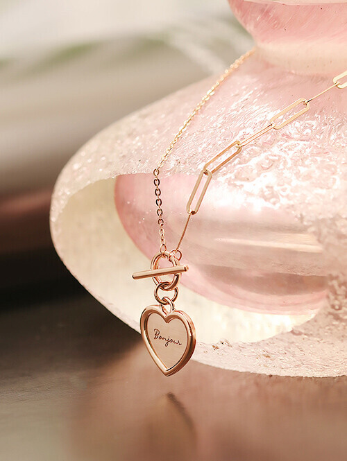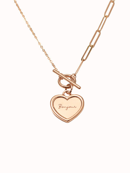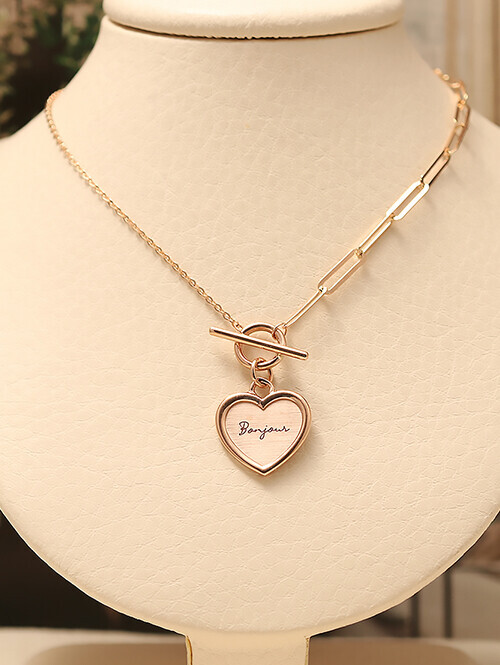 ' Bonjour ' 레터링이 들어간 하트 목걸이