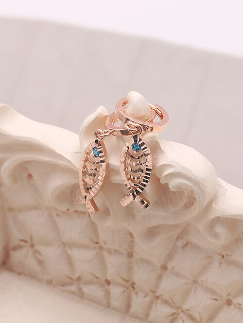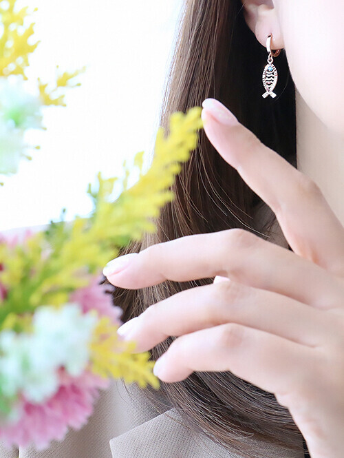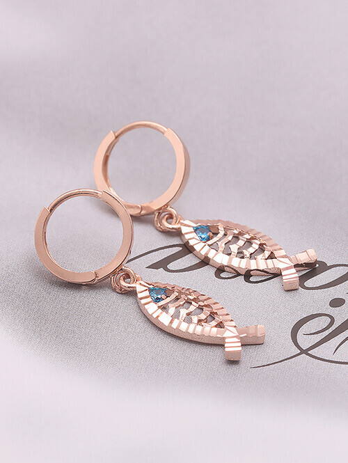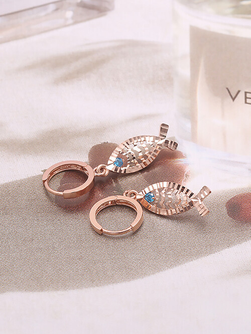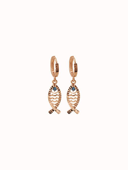 청큐빅과 컷팅 무늬가 들어간 물고기 귀걸이