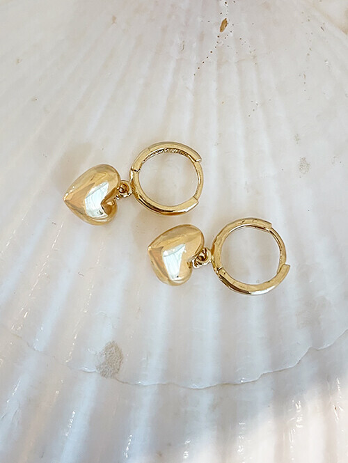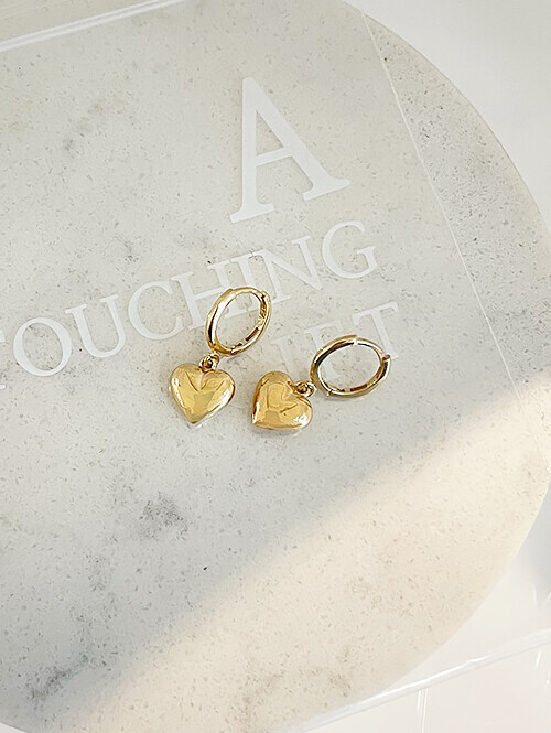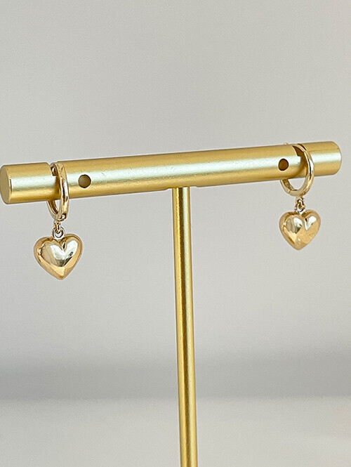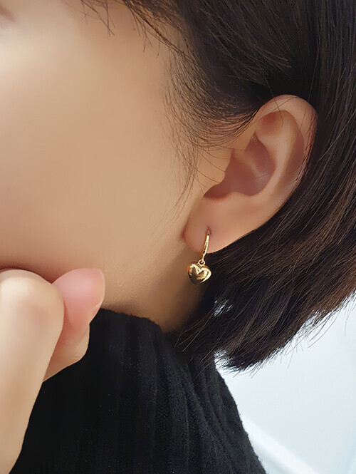 베이직한 링 아래로 통통하트 딸랑이가 연결된 귀걸이