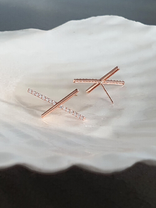 스틱이 X자로 교차된 트렌디한 핀 귀걸이