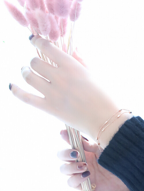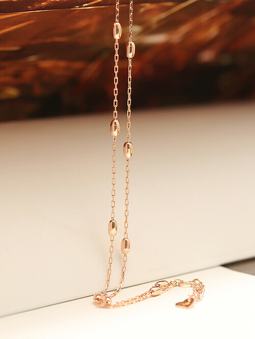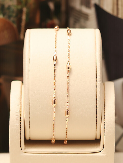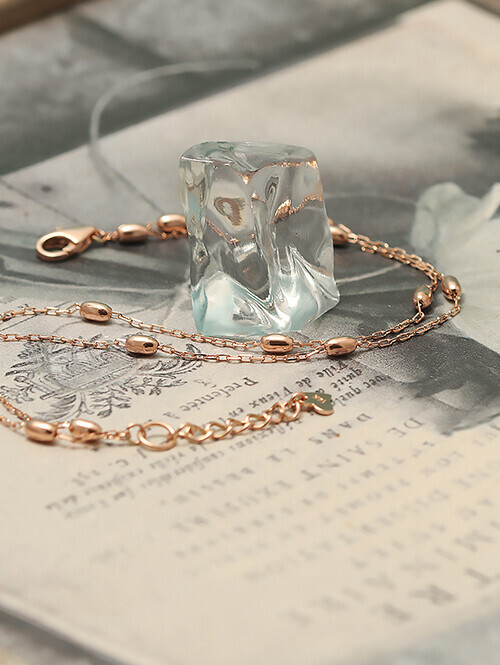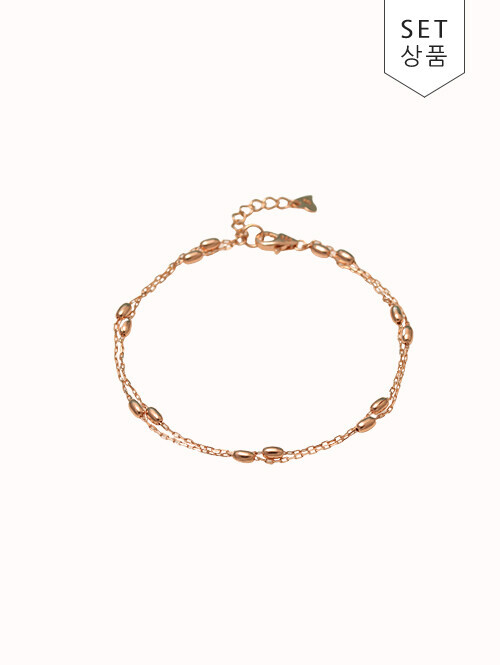 타원형의 볼장식이 중간중간 매치된 디자인의 두줄팔찌