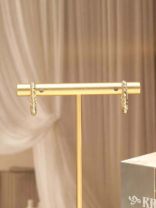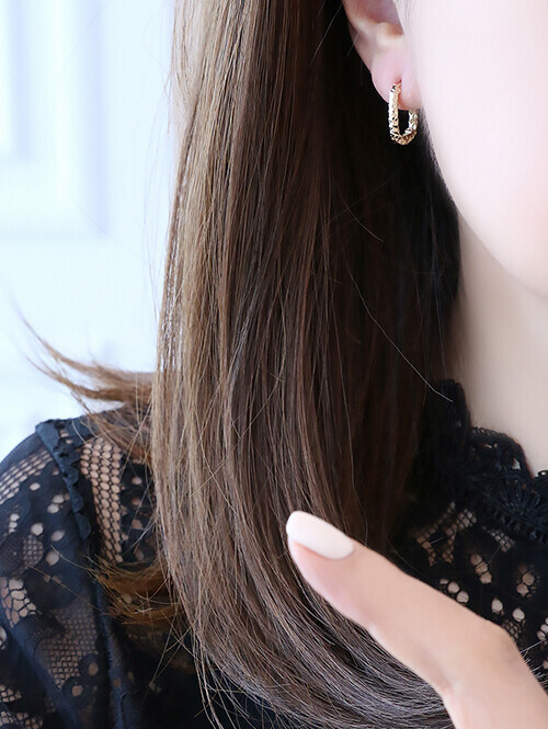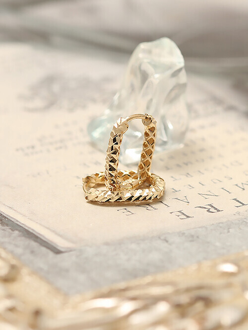 심플한 원터치 링 바디에 컷팅 조각이 되어있는 귀걸이