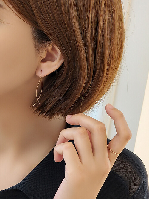 라운드 스틱이 길게 연결된 드롭 귀걸이