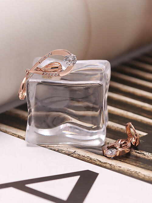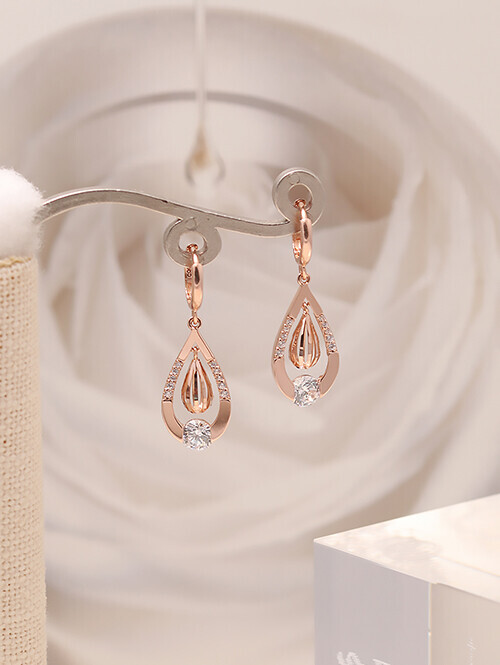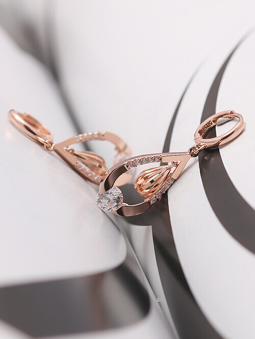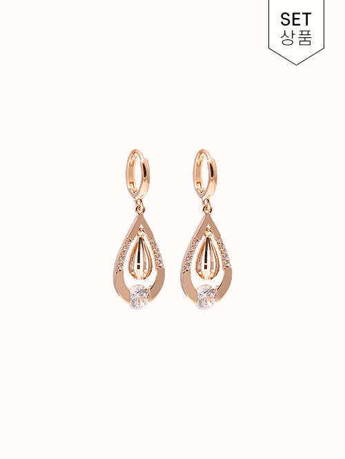 화이트 큐빅과 물방울 쉐입이 드롭된 귀걸이