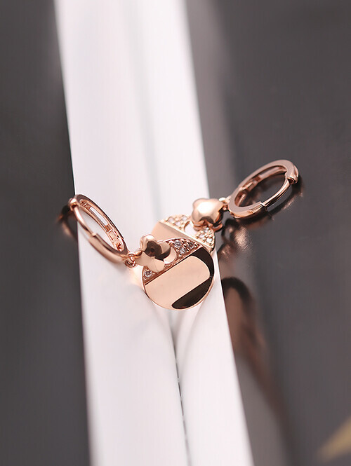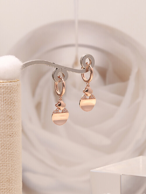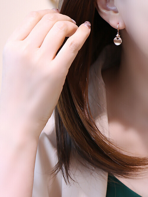 플라워 장식 아래로 웨이브 써클 오브제가 딸랑이는 귀걸이