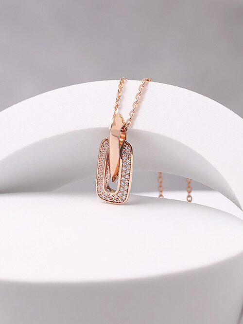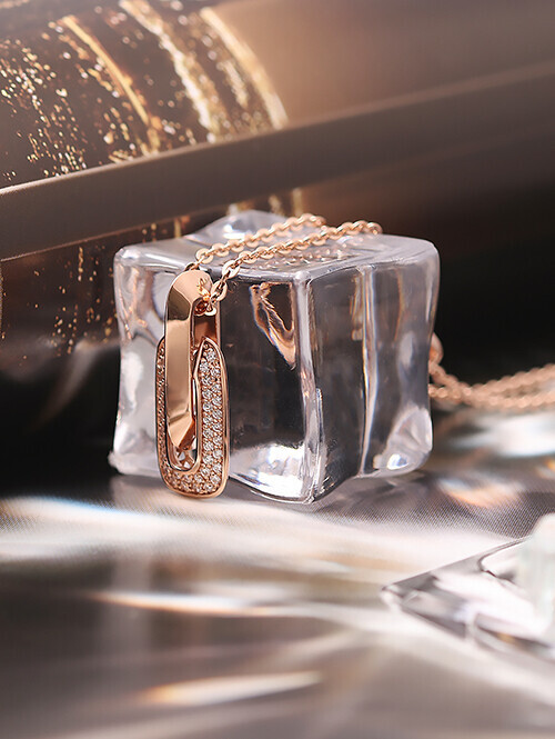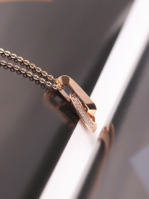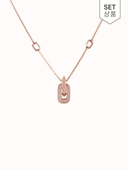 볼드한 펜던트형 클립을 중심으로 체인이 매치된 목걸이