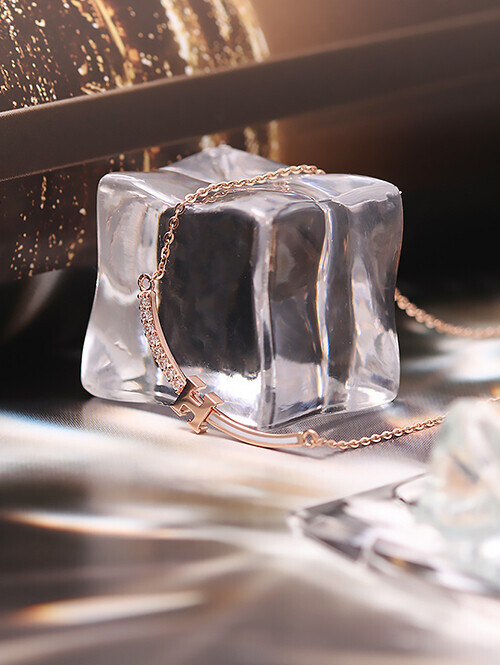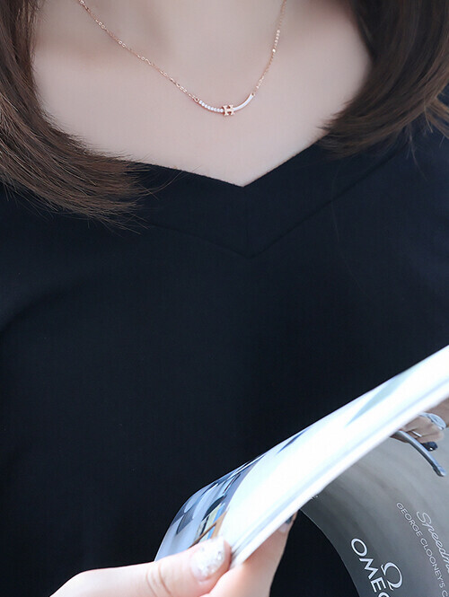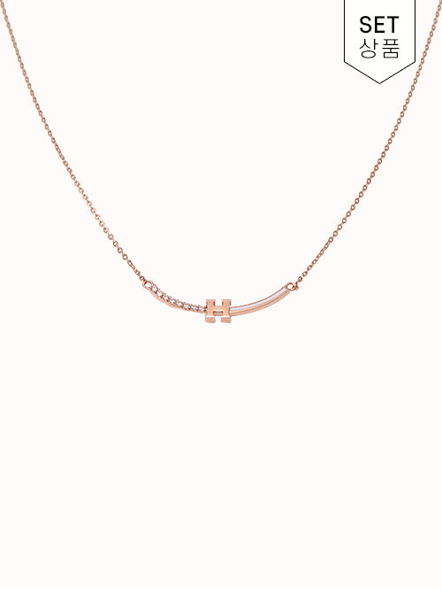 영문 H 쉐입과 라운드 스틱이 매치된 목걸이