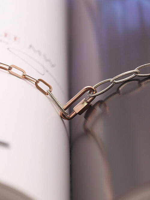 볼드한 클립 장식과 투톤 체인이 멋스러운 포인트 목걸이