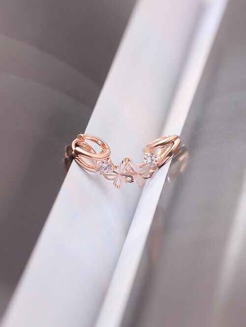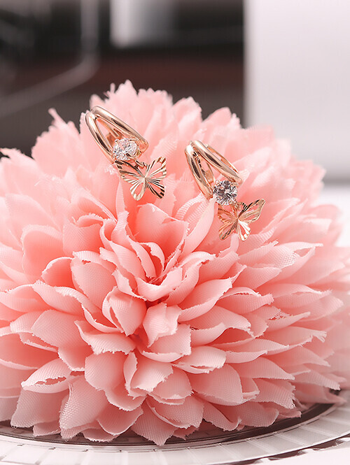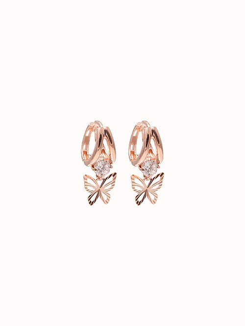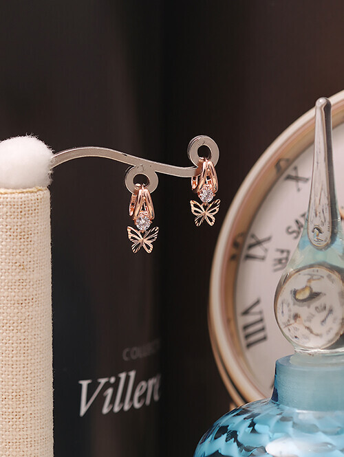 두줄 링 아래로 화사한 컷팅 나비 쉐입이 반짝이는 귀걸이