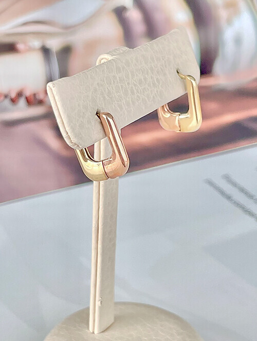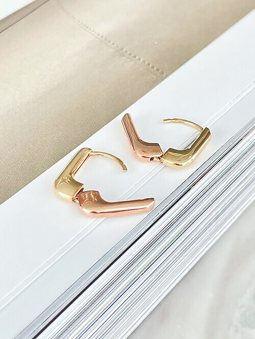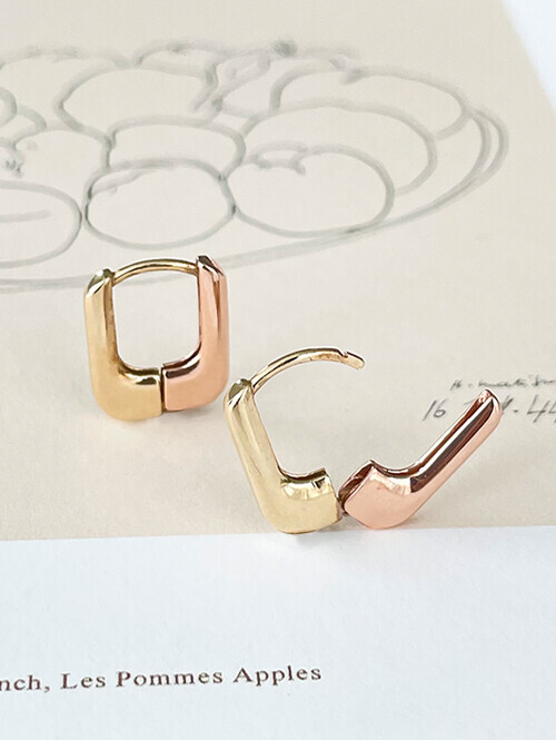 14K 18K 스퀘어 양면 투톤 원터치 귀걸이