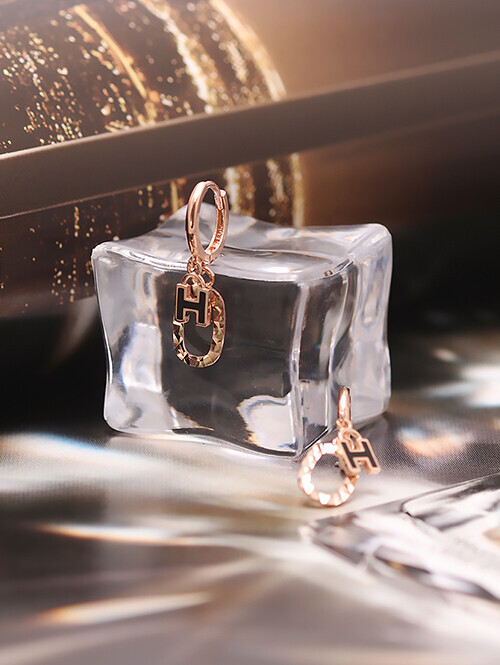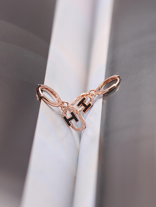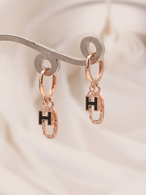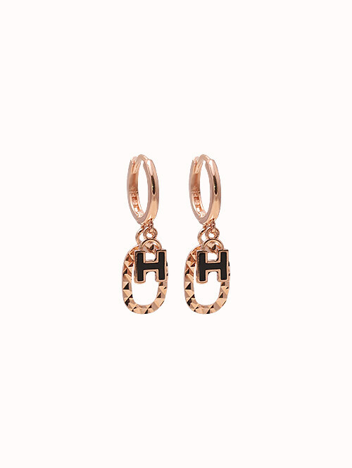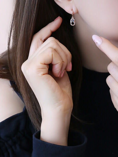 컷팅클립 장식과 에폭시가 더해진 H 이니셜이 딸랑이는 귀걸이