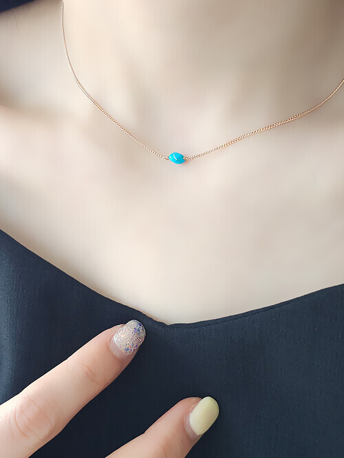 14K 18K 미니멀 천연 터키석 원석 목걸이