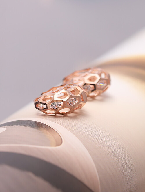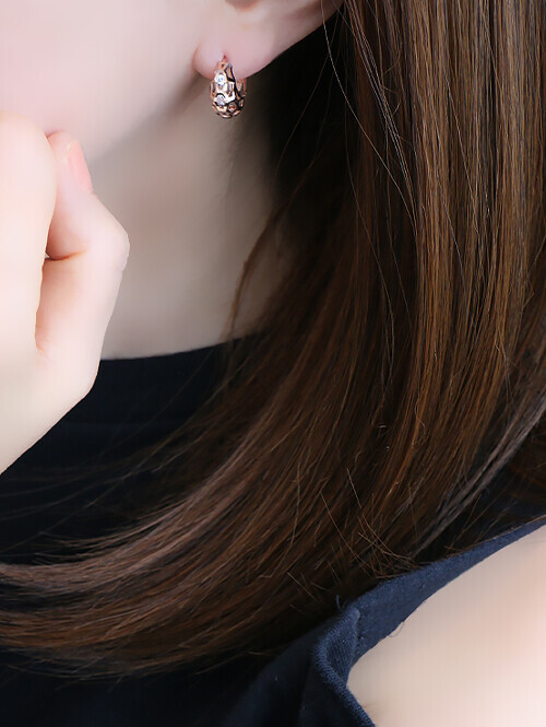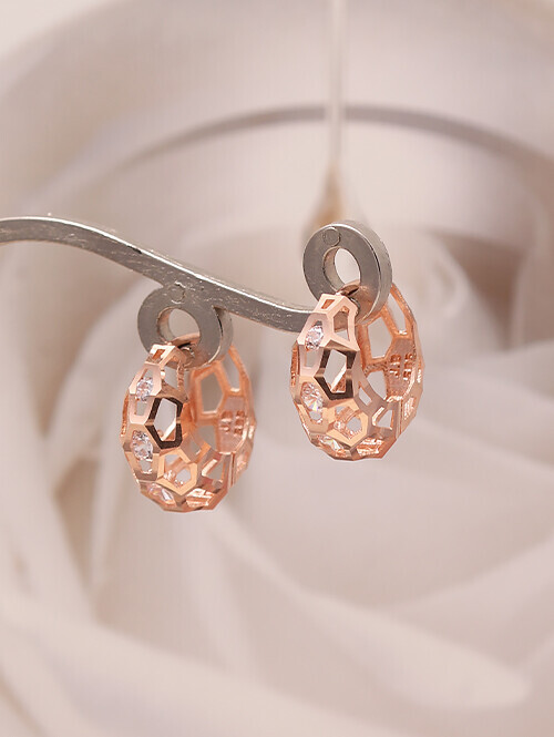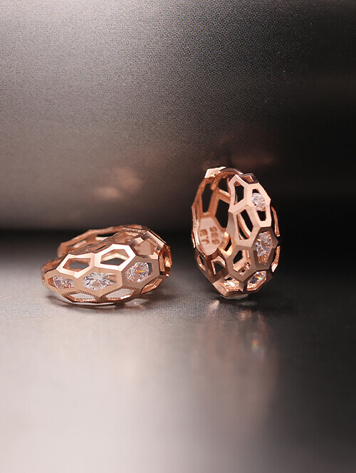 볼륨감있는 메쉬링 사이에 큐빅포인트가 빛나는 감각적인 귀걸이