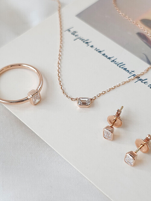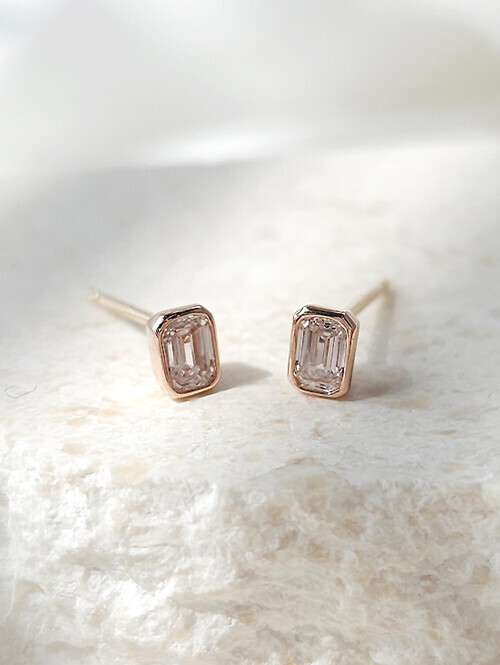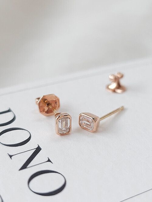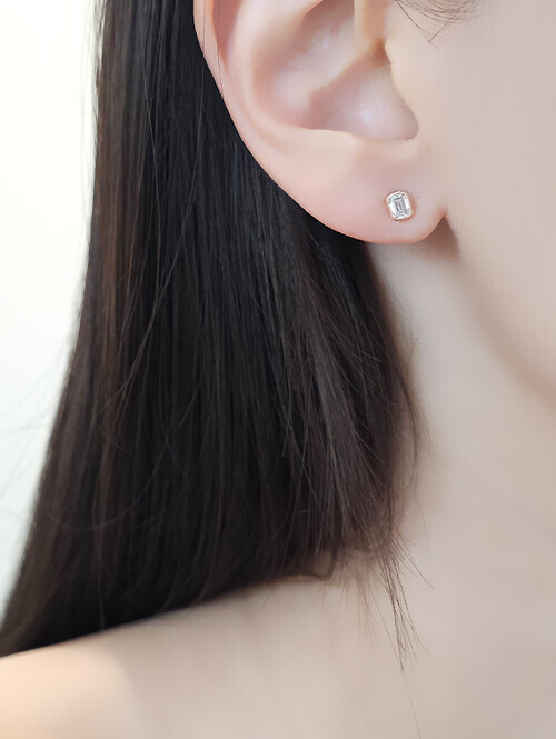 세련된 무드가 느껴지는 스퀘어컷 랩다이아몬드 귀걸이