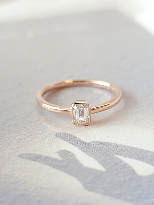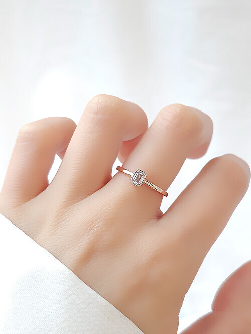 세련된 무드가 느껴지는 스퀘어컷 랩다이아몬드 반지