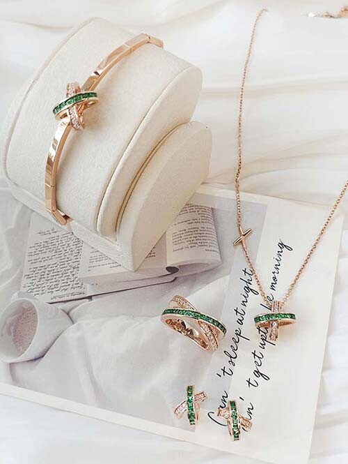 볼륨감있는 X크로스링 바디가 돋보이는 감각적인 팔찌