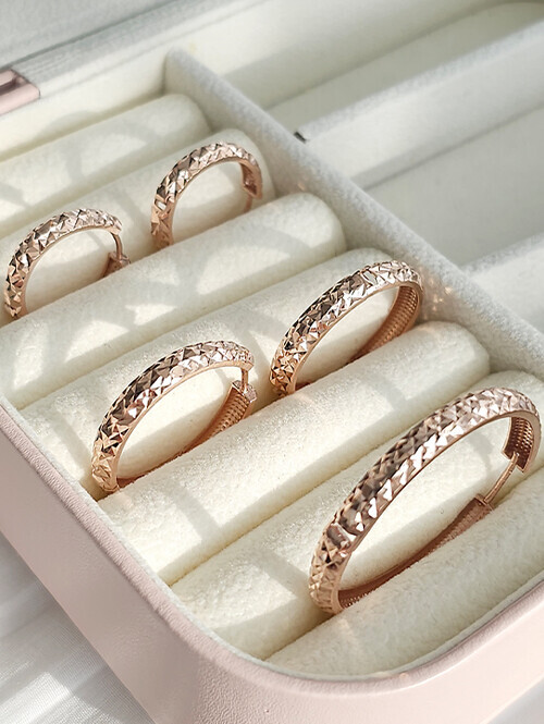 크기감있는 원터치 링 바디에 섬세한 다각형 컷팅이 새겨진 원터치 귀걸이