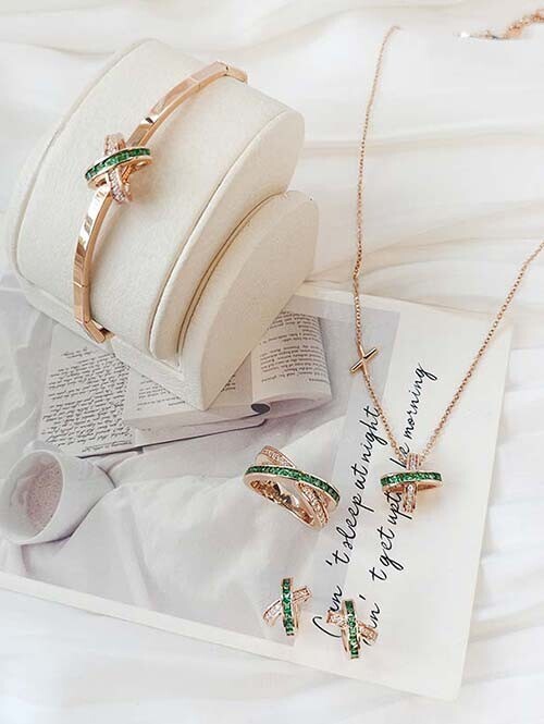 볼륨감있는 X크로스 펜던트가 돋보이는 감각적인 목걸이