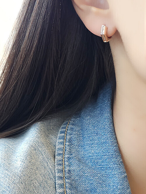 14K 18K 제렐트 육각 큐빅 링귀걸이