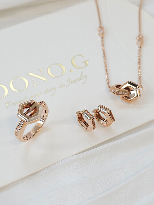 볼륨감있는 육각 쉐입이 귓가에서 돋보이는 감각적인 무드의 귀걸이