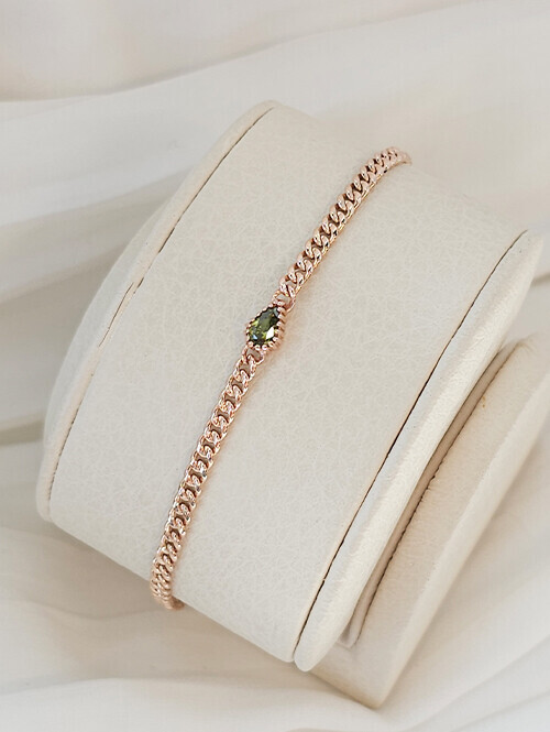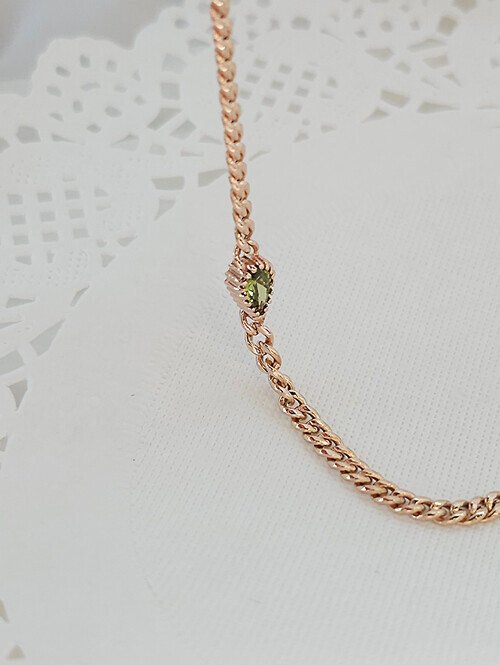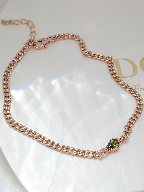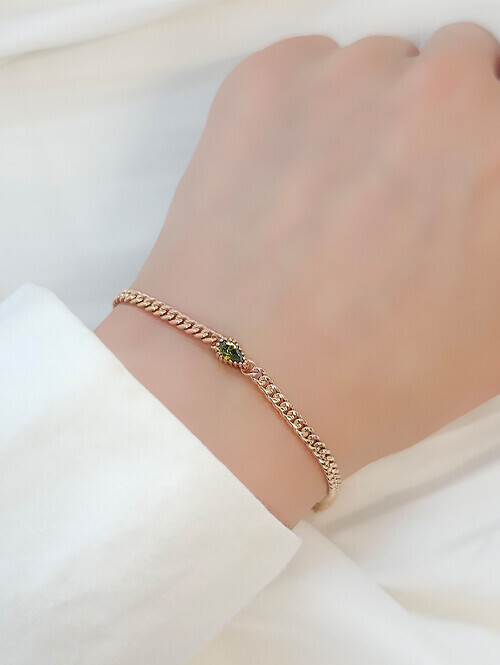 14K 18K 페리도트 물방울큐빅 할로우 체인 팔찌
