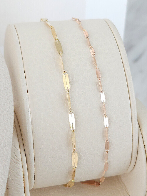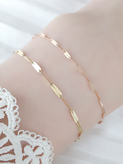 14K 18K 체드 납작 체인 팔찌(중사이즈)