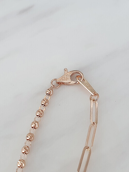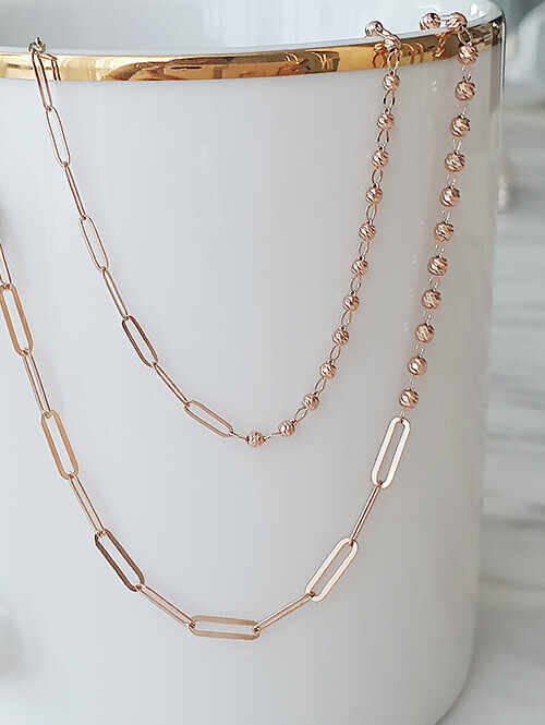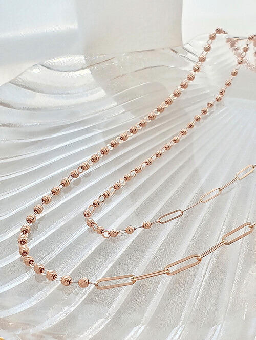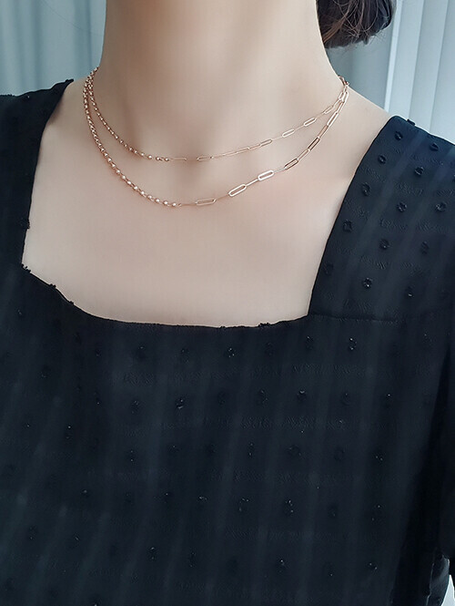 컷팅 볼 체인과 클립 체인이 반반씩 믹스된 레이어드 목걸이