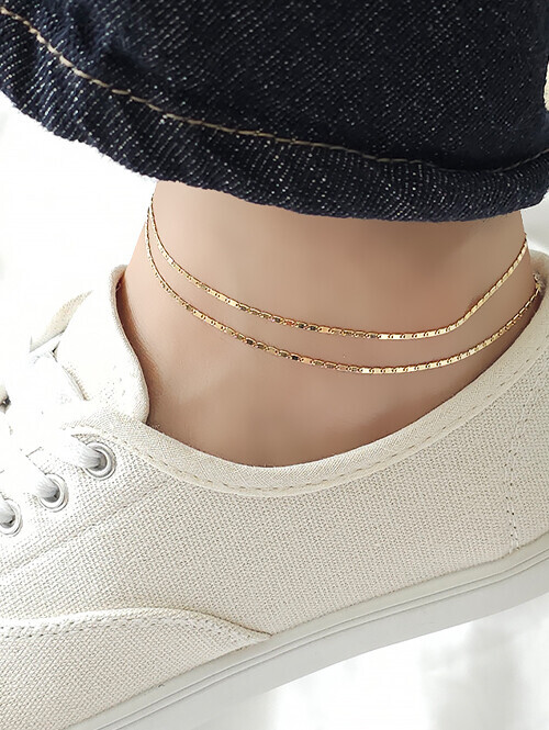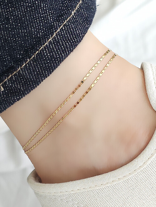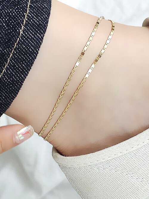 플랫한 납작 체인이 고급스러운 분위기를 더해주는 체인 발찌