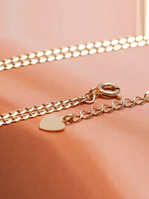 두 줄 체인으로 레이어드 효과를 가져다드리며 블링 블링 스타일리시하게 코디가 가능한 발찌입니다