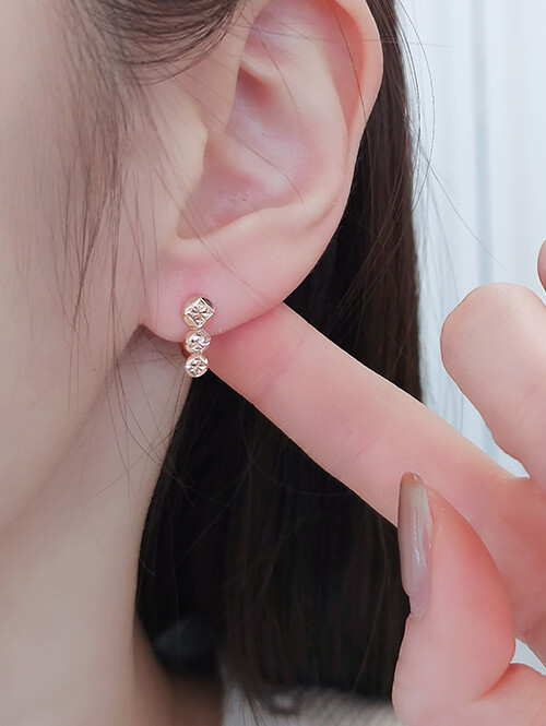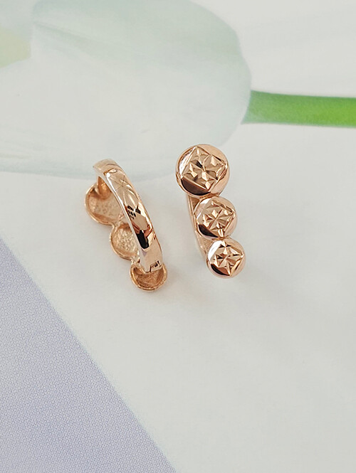 크기가 다른 써클쉐입에 조각컷팅되어 반짝이는 심플한 귀걸이