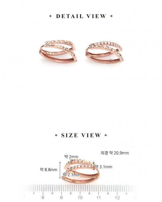 마치 2개의 링귀걸이를 레이어드 한듯 착용되어 눈에 띄면서도 스타일리쉬하게 나타내드려요~