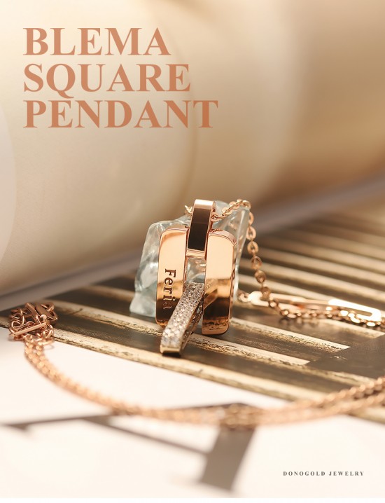 레터링이 각인된 볼드한 둥근 사각체인을 중심으로